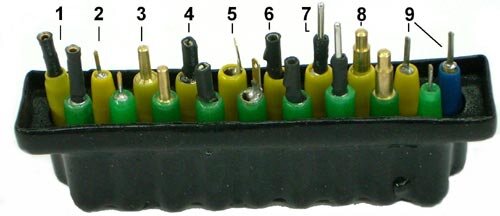 ATENCIÓN: los conectores opcionales - no incluídos en el kit - NO condicionan el uso de la marcas. Para poder conectarse a determinadas fichas de diagnóstico no hay necesidad de comprar el juego de conectores originales opcional. Se usan pines - incluidos - que se detallan a continuación: ![]() | |||